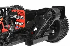 The Dementor XP features a robust pivot ball-style front suspension utilizing steel pivots and steering turnbuckles in addition to tough composite suspension arms. The rear suspension features composite outboard hubs and one-piece composite upper suspension links. At each corner, durable HiCC8 composite suspension arms and threaded, adjustable 16mm big bore oil-filled shock absorbers produce plush, compliant handling.
