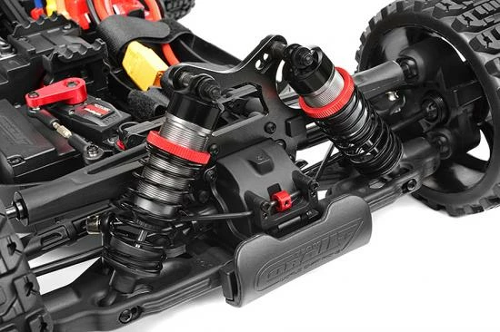With a Team Corally Kuron 2050KV 4-pole motor mounted on a torsion-resistant aluminium 2-piece sliding mount, you can be confident of attaining maximum speeds for big-air stunts! The motor is fitted with a hardened steel pinion gear, which mates to a hardened steel spur gear on the center differential.